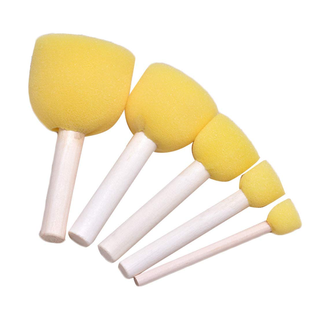 Pack of 5 foam sponge and wooden handle.