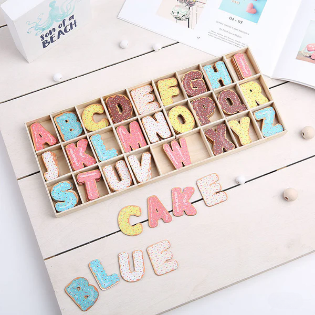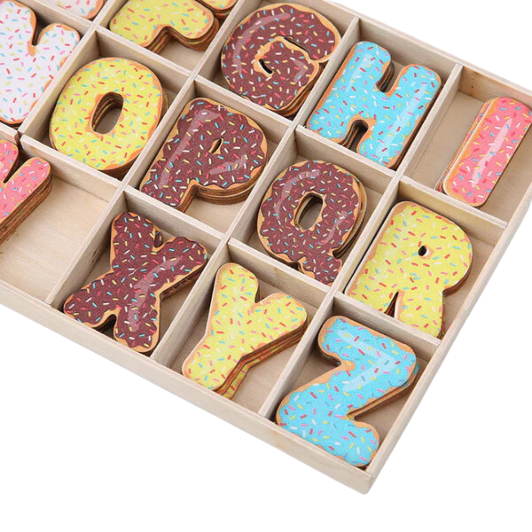 Wooden alphabet with donuts design letters make the perfect & affordable special personalized gift for both girls & boys.