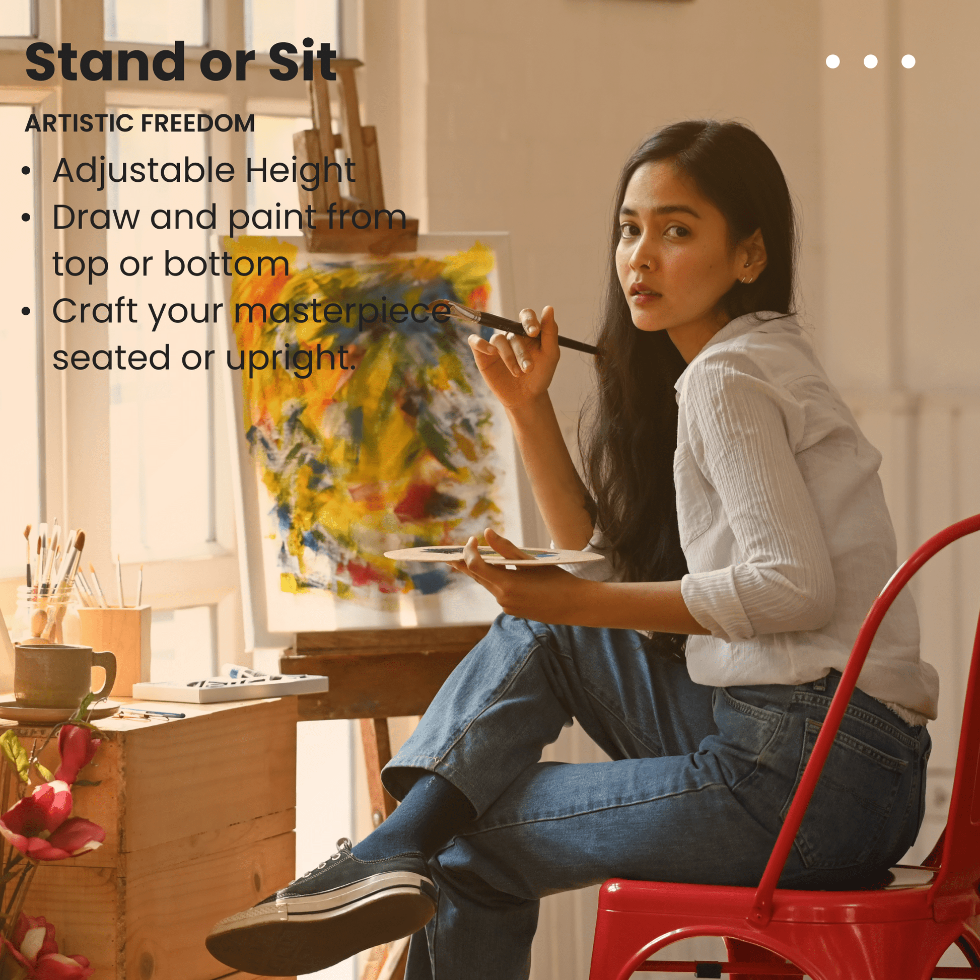 Effortlessly unfolds for quick and straightforward setup.No complicated assembly is required, making it user-friendly for artists and enthusiasts alike.