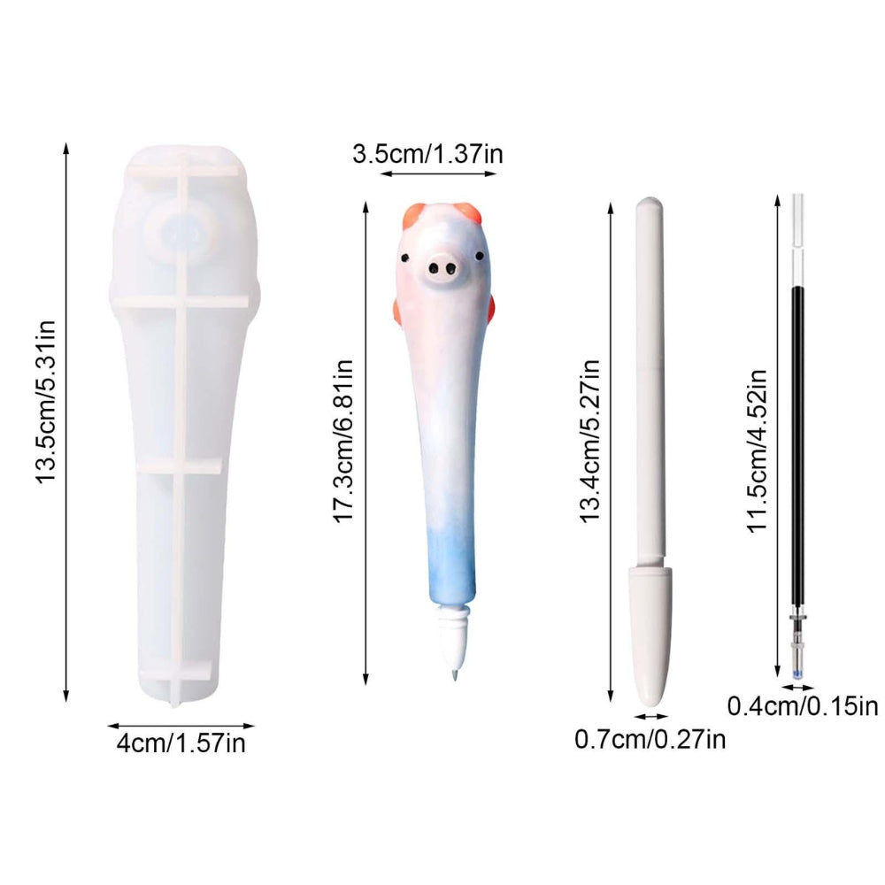 - Packing contents - 1*Cartoon Pen Silicone Mold , 1*Pen Shell , 10*Refill , piggy design : size - 3.5x4x1.4cm / 1.37x1.57x0.55 inches