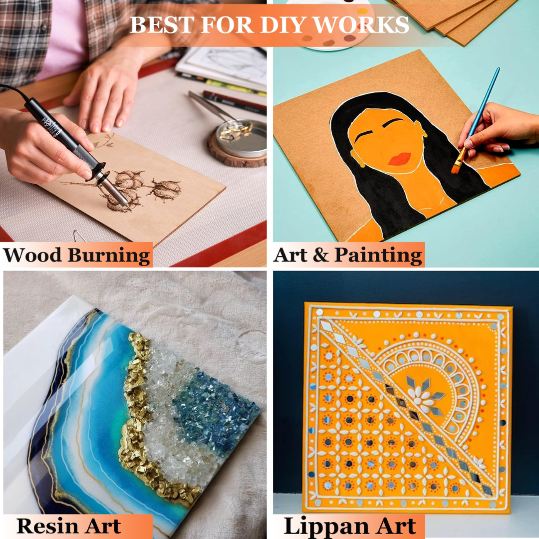 Versatile Sizes: Mdf boards available in various shapes such as circle, oval, square, rectangle, star, heart, hexagon & triangle.